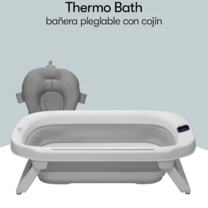 ¡La hora del baño nunca ha sido tan fácil y segura! La bañera plegable Thermo Bath incorpora un cojín ergonómico ajustable que se adapta a recién nacidos, con el que tu bebé estará perfectamente apoyado y seguro durante el baño. Además, cuenta con un termómetro digital con lector táctil que permite controlar la temperatura del agua con precisión, evitando riesgos.