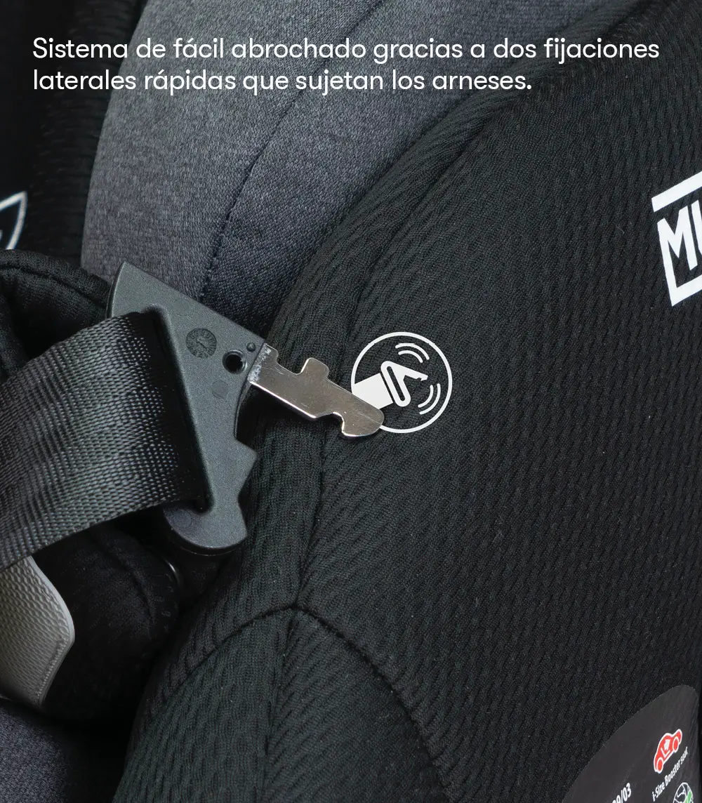 Tu mejor aliada, la evolutiva perfecta para viajar desde el primer día con los máximos niveles de seguridad y confort, con una insuperable posición de reclinado para el bebé, 10º respecto a la horizontal, Mun60 es la silla ideal para familias dinámicas.