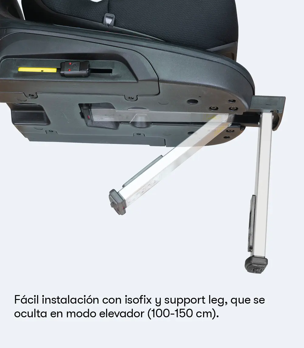 Fácil instalación con isofix y support leg, que se oculta en modo elevador (100-150 cm)