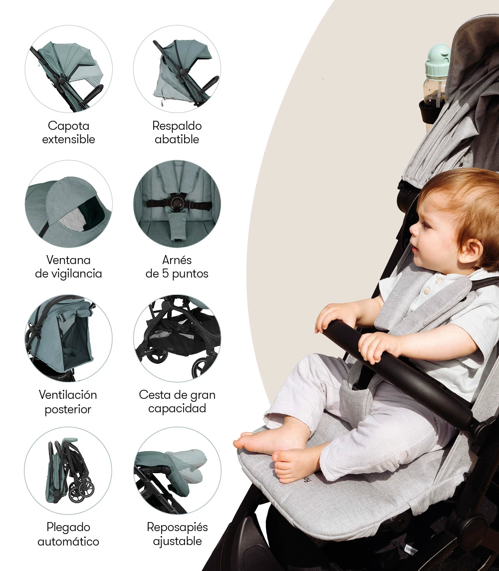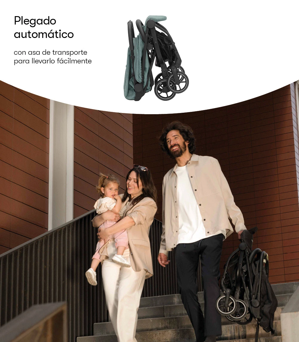 Ligera y maniobrable, Quick Tour es una silla de paseo ligera muy funcional. Perfecta para el día a día y para viajar. ¡Con plegado automático!