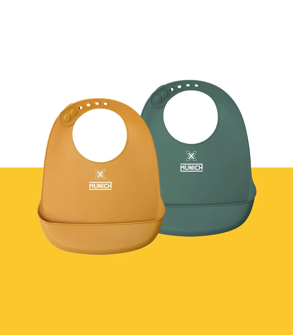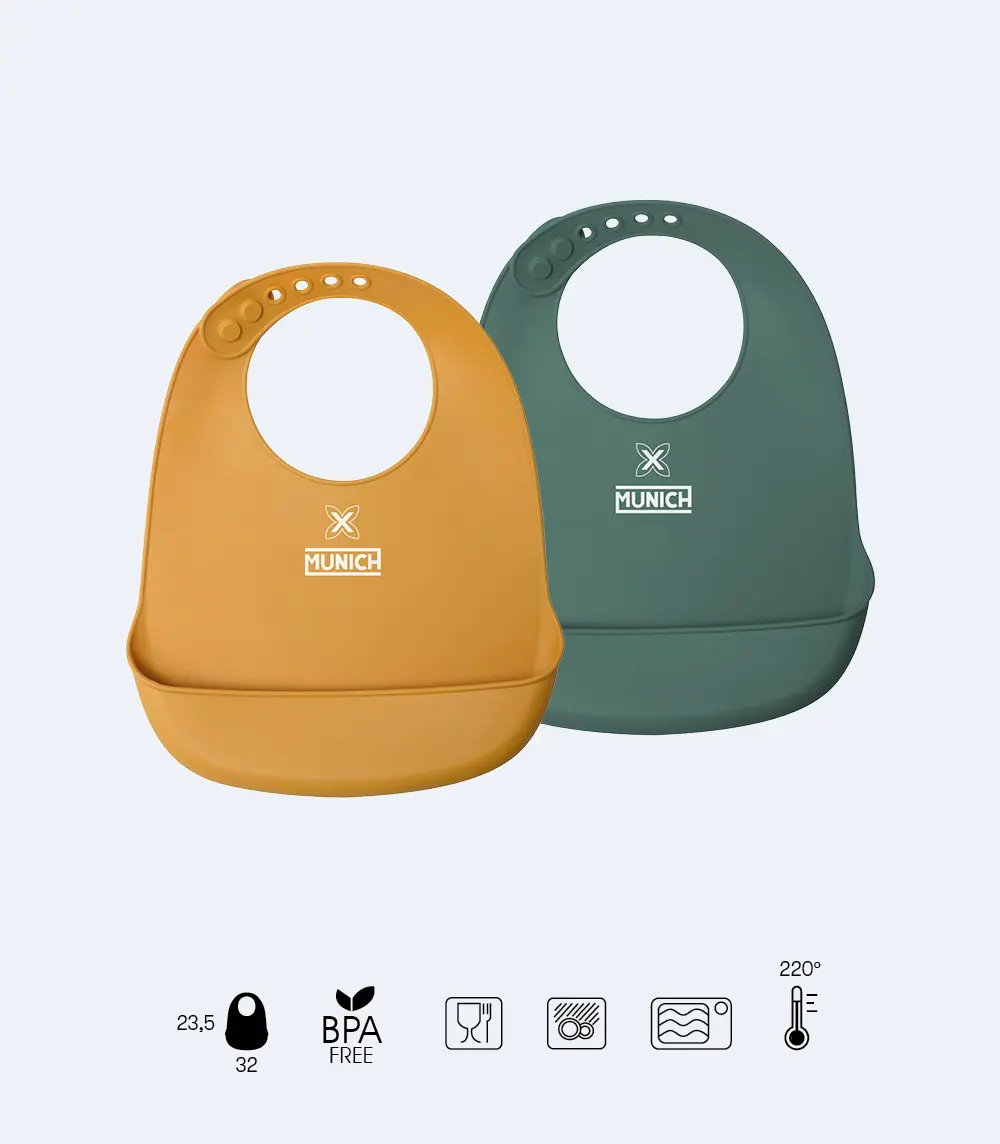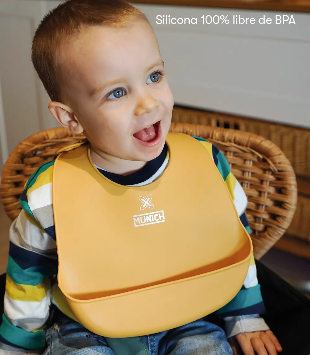 Este set de baberos de silicona será tu mejor aliado para evitar que el bebé se manche durante las comidas. Fabricados en silicona suave, flexible y libre de BPA, estos baberos son tan seguros como prácticos. Su diseño funcional, con cuello ajustable y bolsillo recogemigas, los convierte en el complemento ideal para acompañar a tu bebé en la etapa de alimentación.