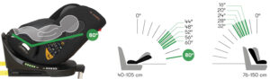 - Máximo confort desde el primer día: su diseño giratorio facilita la colocación del bebé, y su amplia reclinación garantiza viajes cómodos en cada etapa.